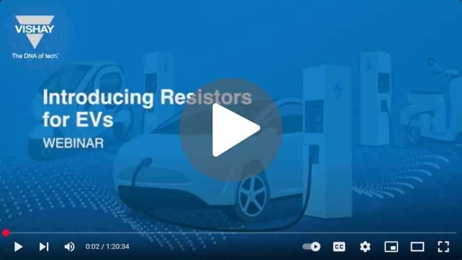 The webinar discusses the development of the electric vehicle market, target applications, and basic resistor functions. The technologies discussed focus on Vishay’s high performance resistor solutions including resistors for gate driver circuits, Power Metal Strip®, and temperature sensing solutions (NTC and PTC) mounted into systems that experience high vibrations, high power, and high voltages in confined areas.